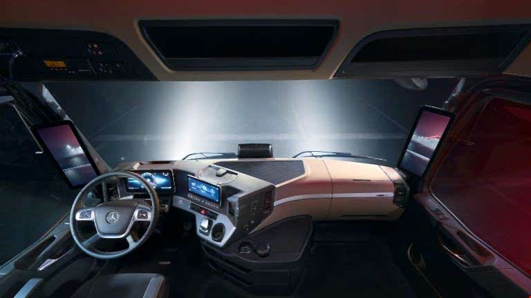 Uzun yol taşımacılığında çalışanlar molalarda yüksek bir uyku ve yaşam konforuna ihtiyaç duyar. Burada Actros L, SoloStar Concept'ten oluşan premium kombinasyon ve son derece konforlu yataklar öne çıkıyor.